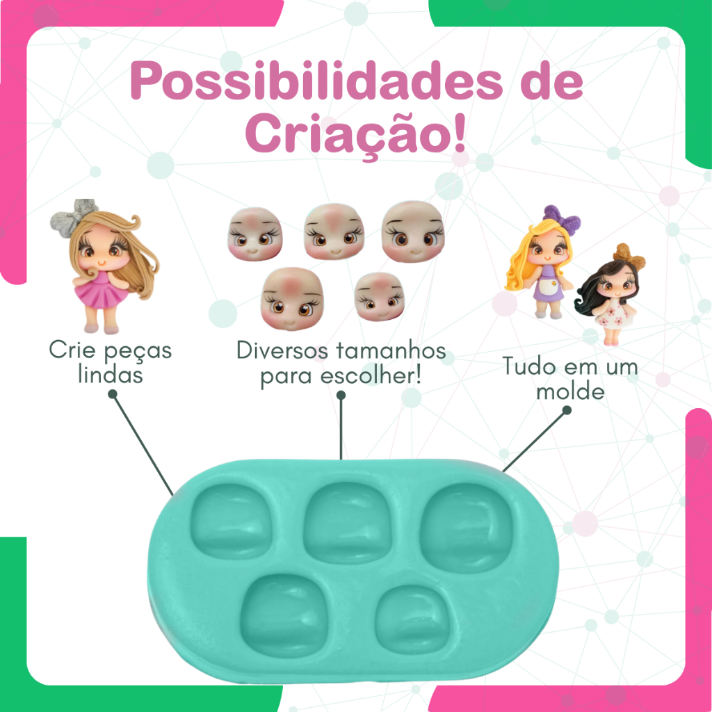 Molde De Silicone Para Biscuit Cabeça Cabecinhas Para Apliques Porcelana Fria