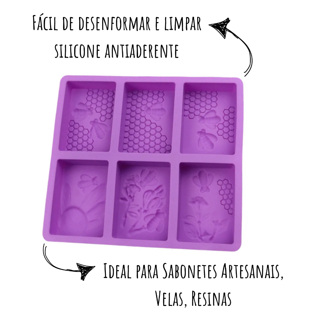 Molde de Silicone Sabonete Artesanal 100g Forma 6 Cavidades Retangular Favo Abelha Sabão Resina Vela