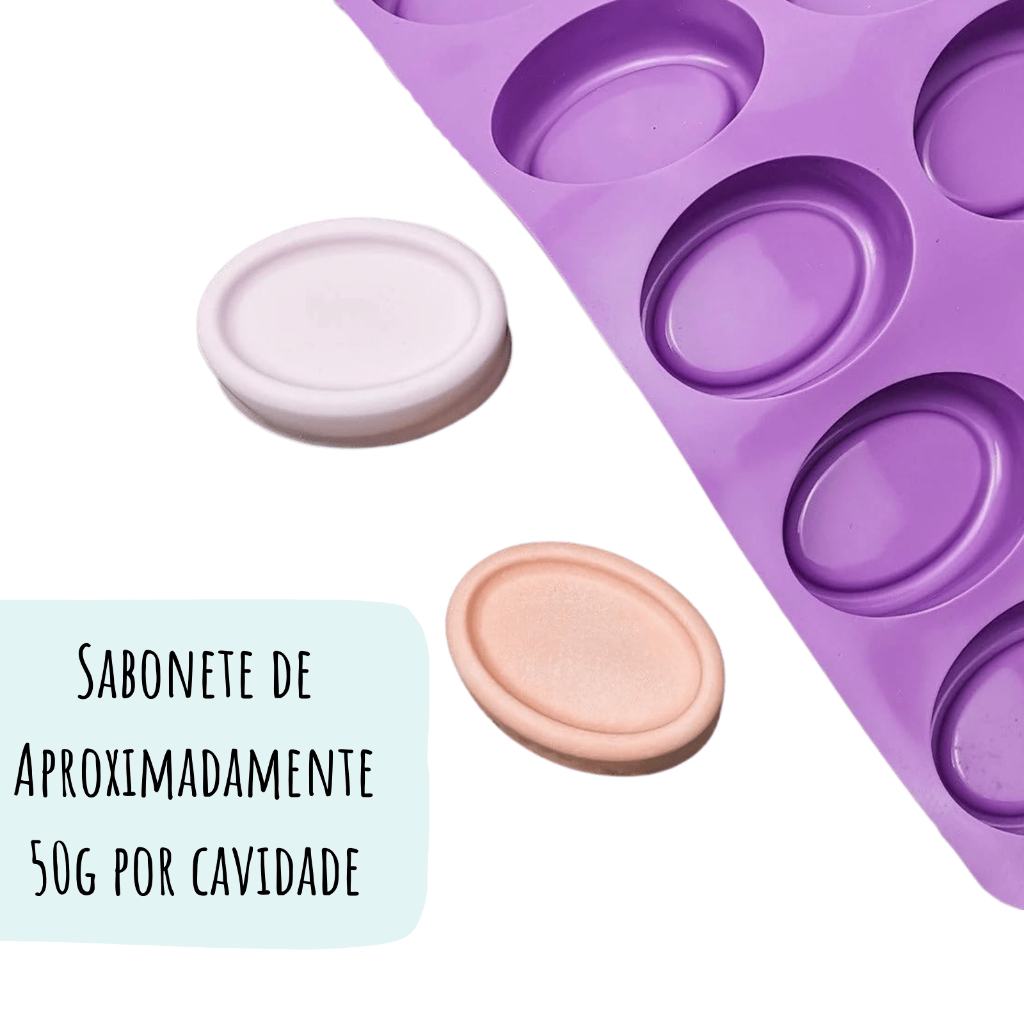Molde De Silicone Sabonete Artesanal 50g Forma 15 cavidades Oval Resina Saboaria Sabao