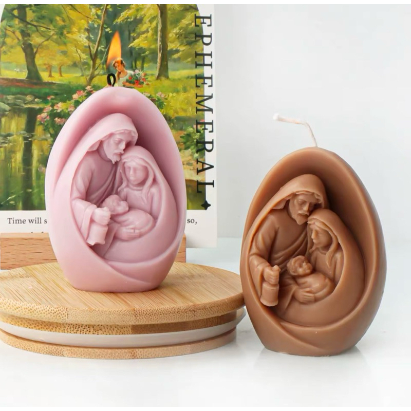 Molde de silicone - Sagrada Família Concha Molde de silicone para sabonete, resina, vela, gesso, biscuit, entre outros derivados. Não serve em alimentos. Descrição do produto: - Medida aproximada peça pronta: 8 cm alt. x 4,5 cm - Peso aproximado: 85 gr.