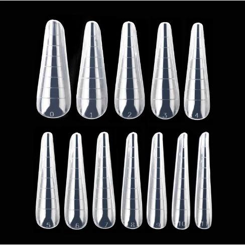 Moldes para unhas Polygel / Gel / Porcelana / Acrílico Os moldes reutilizáveis são usados na criação de unhas em gel, acrílico e porcelana, facilitando o processo de forma prática e moderna. A técnica mais utilizada é a Dual Form, onde o molde é preenchido com material acrílico e aplicado na unha, sendo retirado após a secagem. A vantagem das unhas conhecidas como acrigel ou polygel é ele ser resistente como o acrílico, porém flexível como o gel, tendo menos risco de quebrar e sendo mais fácil de moldar o alongamento. Com este Molde é possível fazer o formato Bailarina desde tanto bem curtinhas como super longas, com laterais afuniladas e pontas retas, o formato de unhas queridinho do momento lembra muito uma sapatilha e por esse motivo leva o nome de bailarina. Lindas e com uma aparência natural as unhas no formato bailarina dão um ar elegante e sofisticado as suas unhas.