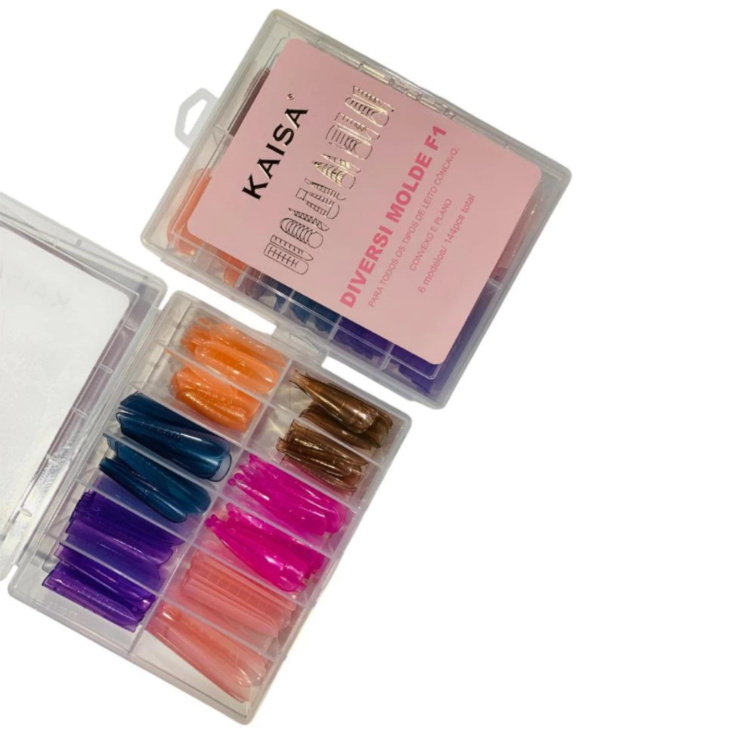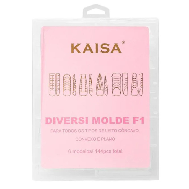 – O Diversi Molde F1 KAISA traz 6 Formatos exclusivos, desenvolvendo para se adaptar a diferentes tipos de unhas, proporcionando mais resistência, estrutura e um acabamento ainda mais profissional. – São 144 PCS. Os Formatos são: * Quadrado com Volume: Curvatura de 50% , Ideal para unhas CONVEXAS; * Mandorla: Curvatura de 30% , Perfeito para unhas PLANAS e CONVEXAS; * Curvo: Curvatura de 30% , Versátil para unhas PLANAS, CÔNCAVAS e CONVEXAS; * Quadrado Ápice Baixo: Curvatura de 30% , Ideal para unhas PLANAS; * Stiletto: Curvatura de 30% , Alongamento Pontiagudo para um VISUAL OUSADO e SOFISTICADO; * Bailarina: Curvatura de 30% , Formato ” COFFIN “, Elegante e Resistente, Perfeito para unhas PLANAS;
