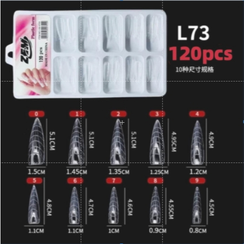 Molde F1 BAILARINA Cx/120 Unidades Molde F1 Formato Bailarina com Curvatura C Com esse molde poderá fazer varios formatos de unhas em poligel, gel ou acrilico. Sao 110unidades de Moldes reutilizaveis possuindo 10 tamanhos diferentes. A técnica do Molde F1 está super em alta, além de diminuir seu tempo de atendimento, e ter o controle de produto necessário sem disperdicio.