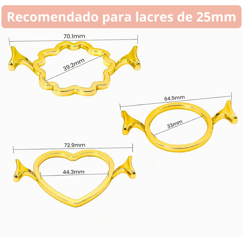 Moldes para Lacre de Cera – Kit com 3 Formatos (Coração, Flor e Redondo) – Para Selos 25mm Deixe seus projetos com um toque único e artesanal! Esse kit com 3 moldes é perfeito para quem ama DIY, lembrancinhas e papelaria criativa. Você vai receber: • 1 molde em formato de coração • 1 molde em formato de flor • 1 molde em formato redondo Características: • Feitos em metal com acabamento dourado • Compatíveis com selos de cera de 25 mm • Reutilizáveis e resistentes ao calor • Detalhe de setinha decorativa nas extremidades Indicado para: • Convites de casamento • Cartas personalizadas • Embalagens especiais • Projetos criativos e lembranças Enviamos com carinho e segurança!
