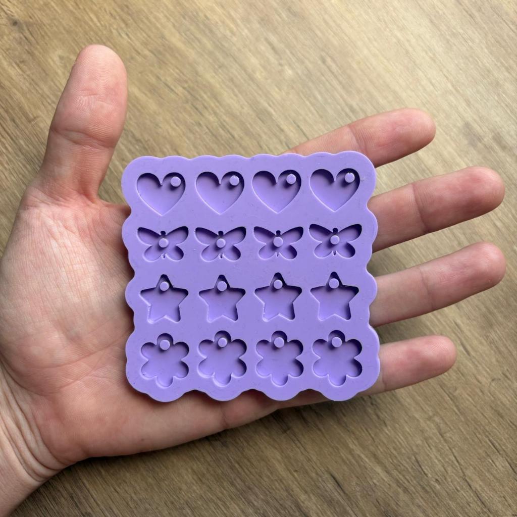 Molde de Silicone 16 Pingentes com aproximadamente 2cm de largura 3mm de espessura Quais as vantagens de usar nossos moldes? - Usamos a melhor MATÉRIA PRIMA oferecida no mercado; - Moldes com acabamento extremamente brilhoso, facilitando no desmolde da peça; - Não suja e não rasga; - Respeitamos todos os critérios de QUALIDADE para fabricação dos moldes; - Todos as peças já vão com 72Hrs de cura, para maior vida útil do molde; Recomendações: Nossos produtos são de fácil manuseio, podendo ser usados por iniciantes ou profissionais, para aplicação de: Gesso, cimento, concreto, parafina, glicerina, resina, biscuit e muito mais; Obs: A cor do molde pode variar conforme disponibilidade do estoque; Dica: Para maior durabilidade de seu molde, use desmoldante! Qualquer dúvida, estamos à disposição. Obrigado.