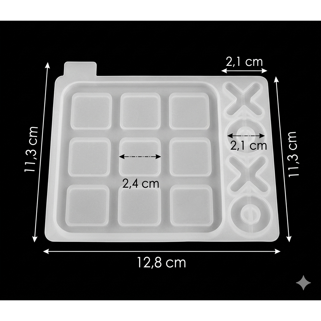 Forma Molde Silicone Resina Diversão Jogo da Velha P Mod 2 Medida nas fotos Pode ser utilizado para fazer Resina / Sabonete / Vela / Biscuit / Gesso / Cimento * Cor do molde Transparente Pode ser utilizado para fins alimentício. Temos outros modelos, consulte nossos anúncios.