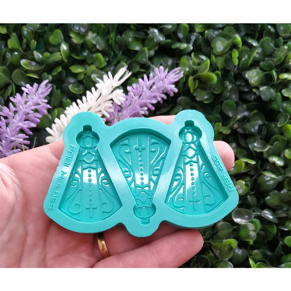 Molde Silicone Resina Pingente Nossa Senhora Aparecida 3 cavidades Chaveiro biscuit R-255