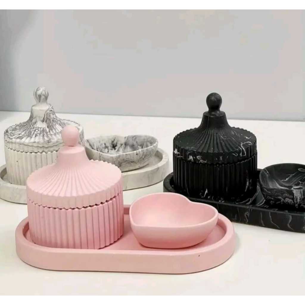 Moldes de silicone para resina ou trabalho com gesso A - Molde Bandeja B - Molde Pote com tampa C - Molde Porta Joias D - Jarro de Flor