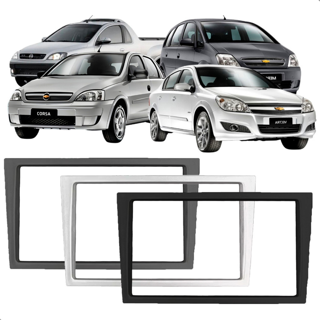 Moldura 2DIN Preto / Prata / Cinza - 7 Polegadas Corsa Vectra Montana Meriva