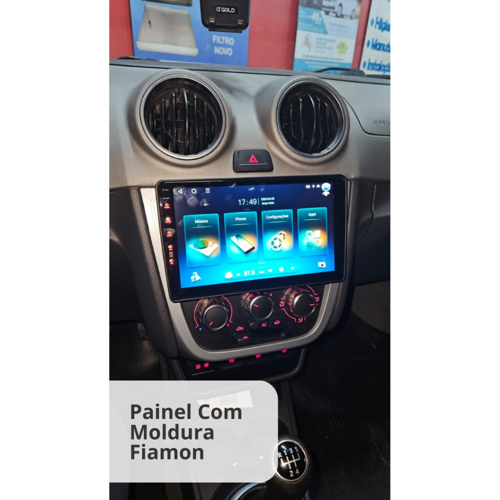 Moldura 9 Pol. Flutuante Gol G5, Saveiro, Voyage C/ Suporte 4 Botões - Black Piano