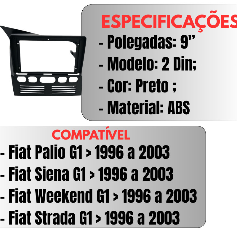 Moldura 9"Polegadas Para Multimídia Fiat Palio Siena Strada G1