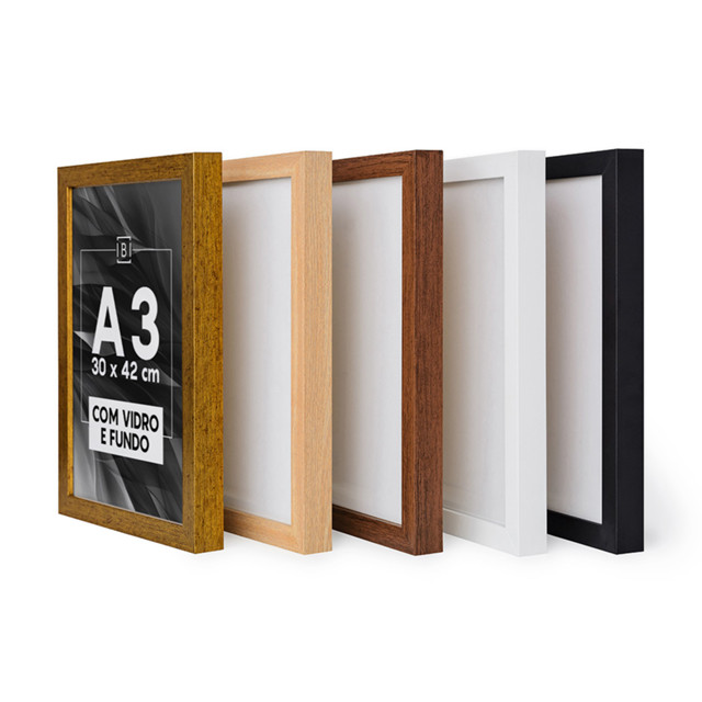 Moldura PREMIUM Decorativas Com Vidro Emoldure documentos, certificados, fotos de família ou alguma imagem de sua preferência, no tamanho/medida A3. Para proporcionar maior proteção e durabilidade (inclusive, contra a umidade), nossas molduras acompanham vidro. Medida deste anuncio: 30 x 42 cm. Formato A3 Material: Vidro e fundo de MDF fixado com flexpontas (fundo removivel). Estrutura: Moldura caixa com 3 cm de perfil. Acabamento: Moldura estilo caixa, robusta, revestida com 3cm de espessura e verso de MDF. Cores disponíveis: Preto, Branco, Madeira Escura, Madeira Clara, Dourada (escolher através da variação cor). Embalagem: Produto envolto com plástico bolha e caixa de papelão própria. Marca: Bimper IMPORTANTE: Somente a Bimper fabrica, comercializa e garante a qualidade dos quadros da marca Bimper.