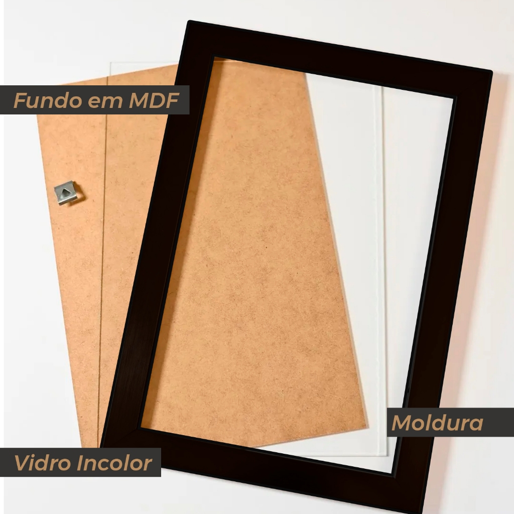 Fabricante de qualidade e garantia! Atenção: Antes de finalizar a compra, confirme o tamanho da moldura! - Imagem para moldura 21x30cm - Moldura Finalizada Tamanho 24x33cm Acompanha 1 Moldura com Vidro - 21x30cm Moldura com largura: 2CM MATERIAL: Moldura em madeira Eucalipto pintada laqueada. Cores disponíveis: Preto, Branco, Marrom e Pinus Fundo em MDF 3 mm. Molduras com Vidro Transparente 2 mm Instalação Prático e fácil! Acompanha fundo com pendurador móvel, pode ser colocado na vertical ou na horizontal. Limpeza A limpeza dos quadros pode ser feita com pano úmido. Trabalhamos com diversos tamanhos e modelos de quadros, temos tamanhos A6, A5, A4, A3 e A2, consulte-nos! Aqui você conta com: -Bom atendimento; -Envio dentro do prazo; -Envio para todo Brasil; -Entrega do produto ou seu dinheiro de volta! Muito obrigado pela sua visita. Possui dúvidas? Mande sua pergunta >>>Visite nossa loja e conheça mais opções<<<