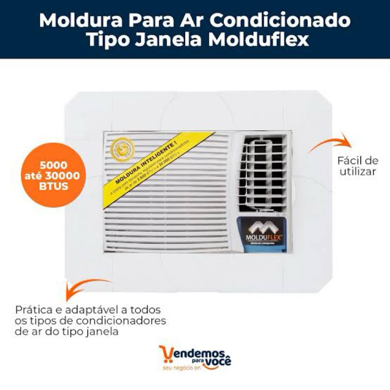 Moldura ajustável para ar-condicionado 5.600 a 30.000BTU'S com espuma para vedação lateral para que o ar funcione melhor. A moldura tem 10 cm de largura ou seja, tapa o buraco menor ou igual à 10cm. A moldura para Ar condicionado da Molduflex é fácil de utilizar, prática e adaptável a todos os tipos de condicionadores de ar do tipo janela existentes no mercado, entre 5.600 a 30.000 BTU's. A única moldura para condicionadores de ar regulável do mercado. INTELIGENTE - Adapta-se ao tamanho de diversos condicionadores de ar. IMPERMEÁVEL - Resistente a umidade e de fácil limpeza. DESING MODERNO - Em sintonia com as mais novas tendências de arquitetura, permite uma melhor aparência e sofisticação ao seu ambiente disponíveis nas cores BRANCA. PRÁTICA - Fácil de manusear e não requer ferramentas para a montagem e instalação. RECICLÁVEL - Feito de material totalmente reciclável. Protegendo o meio ambiente.