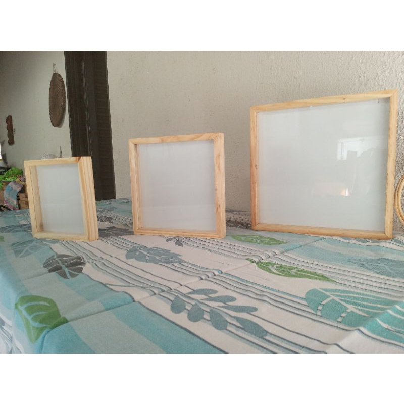 Moldura Pequena Tamanho 1 = 19 x 19cm Internamente, Cabem bastidores até 18 cm de diâmeto Extreno, Possui proteção em VIDRO 2mm (Não acompanha o Bastidor)