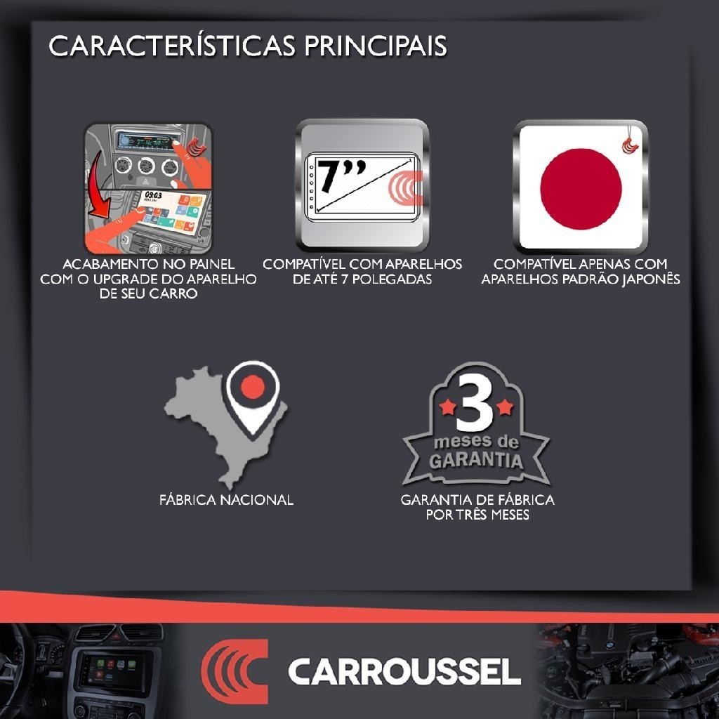 #Carroussel# - Nossa missão é garantir a sua satisfação; - Prezamos por produtos com alta qualidade e procedência; - Garantia junto aos fabricantes/importadoras; - Emitimos nota fiscal para garantir a sua segurança; - Disponibilidade dos produtos para agilizar a postagem em até 24hrs; - Consulte nossa descrição para mais informações e, se necessário, entre em contato com o fabricante para melhor orientação. ______________________________________________________________ Moldura De Painel 2 DIN Multimidia Dvd Mp5 Padrão Japonês Black Piano Preto Brilhante AP1107 / EPX 397 Fiat Punto e Linea Produto desenvolvido para dar acabamento no painel do seu carro na instalação de um rádio/MP5/Multimídia/DVD com tamanho de 2 DIN de padrão japonês. #APLICAÇÃO# - FIAT PUNTO: 2013, 2014, 2015, 2016 e 2017 - FIAT LINEA: 2015 e 2016 Para mais detalhes sobre compatibilidade consulte a foto “APLICAÇÃO” #PRINCIPAIS CARACTERÍSTICAS# - Tamanho máximo de compatibilidade de aparelho 2 DIN: 7” - Longa Durabilidade - Excelente Acabamento - Fixação Firme e Encaixe Perfeito - Fácil Instalação #ESPECIFICAÇÕES TÉCNICAS# - Marca: Autoplast / Expex - Tamanho: 2 DIN Padrão Japonês - Material: Fabricada em Plástico Resistente (PA6 C/ 10% FV) - Cor: Black Piano (Preto Brilhante)* - Garantia de fábrica: 90 dias #ALGUNS MODELOS DE MP5/MULTIMÍDIA/DVD COMPATÍVEIS# Padrão Japonês: - Pioneer, Sony, Kenwood e Alpine Código fabricante: AP1107 / EPX 397 Código de barras: 7898620362140 / 7908004613253 / 7908215400406 Sku: CA040547 #CONTEÚDO DA EMBALAGEM# - 1 Moldura 2 DIN AP1107 / EPX 397 para aparelho padrão japonês - 2 Suportes laterais de fixação do aparelho padrão japonês na moldura - 6 Parafusos de fixação dos suportes laterais na moldura #OBSERVAÇÕES# *É possível ocorrer alguma diferença de cor com em relação ao painel devido à ação do tempo e exposição do veículo ao sol. - São necessários cortes na estrutura interna do painel para instalação dessa moldura. Tais cortes não prejudicam a estrutura do painel e recomendamos que sejam feitos por um profissional capacitado; - NÃO acompanha parafusos para fixação do rádio/MP5/Multimídia/DVD nesta moldura; - Todas as medidas do produto podem variar de 1 a 2mm conforme o lote de fabricação; - Este produto requer um profissional capacitado para realizar a instalação. Caso não possua um profissional de confiança, entre em contato com o fabricante para melhor orientação. Não nos responsabilizamos por má instalação ou uso indevido do produto; - Se possuir dúvida sobre a compatibilidade desta moldura com seu carro consulte a foto "APLICAÇÃO" com os painéis compatíveis ou consulte um profissional de confiança.
