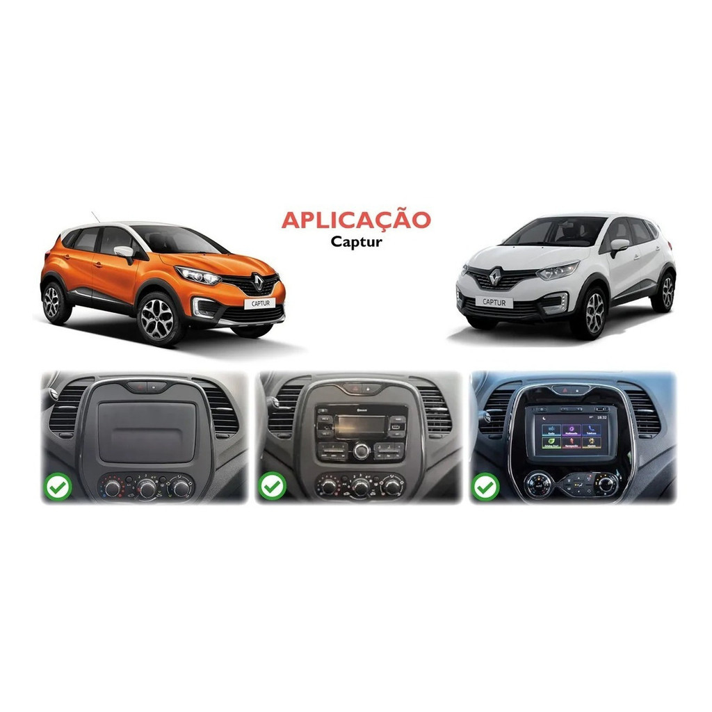 Descrição Moldura 2 Din Padrão Chinês e Japonês cor Preta Aplicação: Kwid 2018 a 2021 Captur 2017 a 2021 Sandero Expression e Privilége 2011 a 2021 Logan Expression 2011 a 2021 Duster Dynamique 2011 a 2021 Oroch Expression 2016 a 2021 ¦ Preto Composto Por: ¦ 1 Moldura Painel ¦ 2 Suportes Laterais de Fixação * Produto Novo * Ótima qualidade * Fácil instalação * Pode ser usado como 2din ou 1din * Recomendamos que a instalação seja realizada por um profissional. ................................................................................................... GARANTIA - leia atentamente as condições abaixo 3 MESES