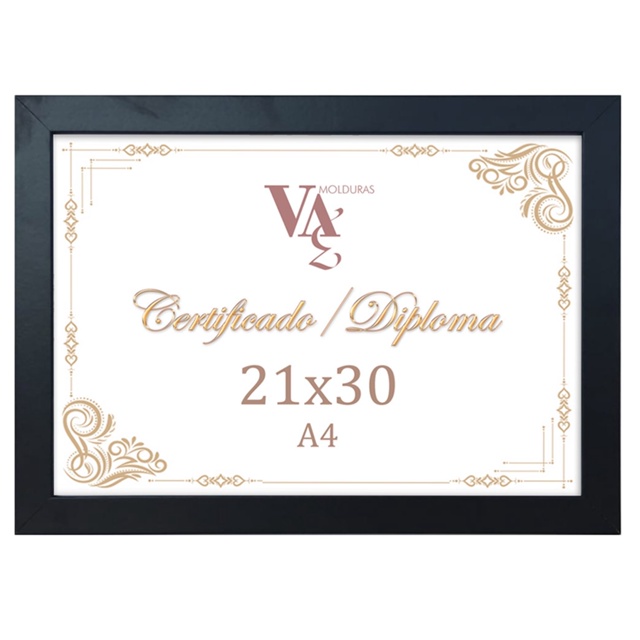Moldura para diplomas e certificados, porta retrato, quadro decorativo, Preto 21x30 a4