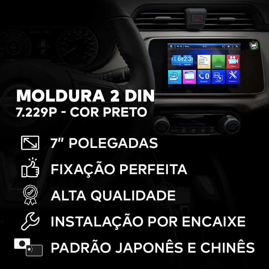 Moldura Preta 7 Polegadas 2 Din Nissan Kicks 2017 2018 2019 2020 2021 e Versa 2021 a 2023