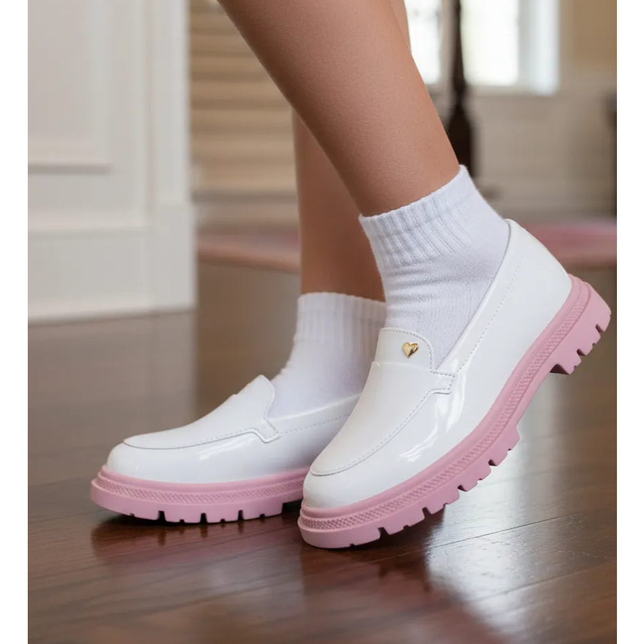 Sapato Molekinha Mocassim Infantil Menina Verniz 2566.100, é confeccionada em material sintético (napa), por inteira de ótima qualidade. Seu cabedal em cor única é por completo em verniz premium, traz também detalhes em costuras aparentes, solado tratorado e logomarca aplicada em um pequeno coração dourado.