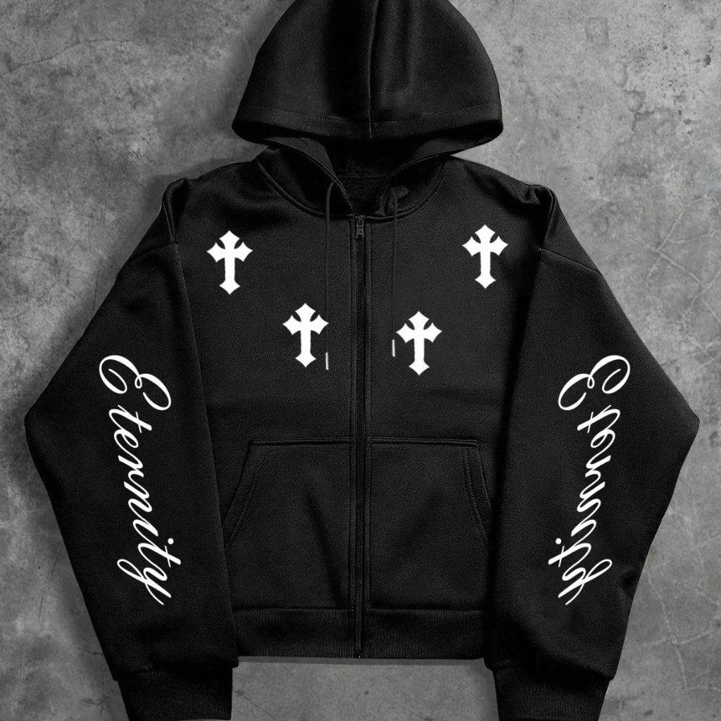 Moletom Aberto Vibe Gotica Cruzes Eternity Estilo Streetwear C/ Capuz Unissex