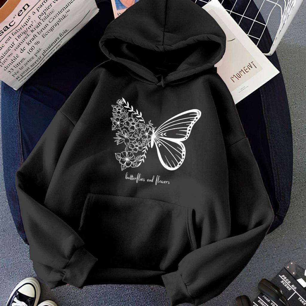 Moletom Blusa de Frio Butterflies and Flowers Bolso Canguru Cordão Capuz 5281