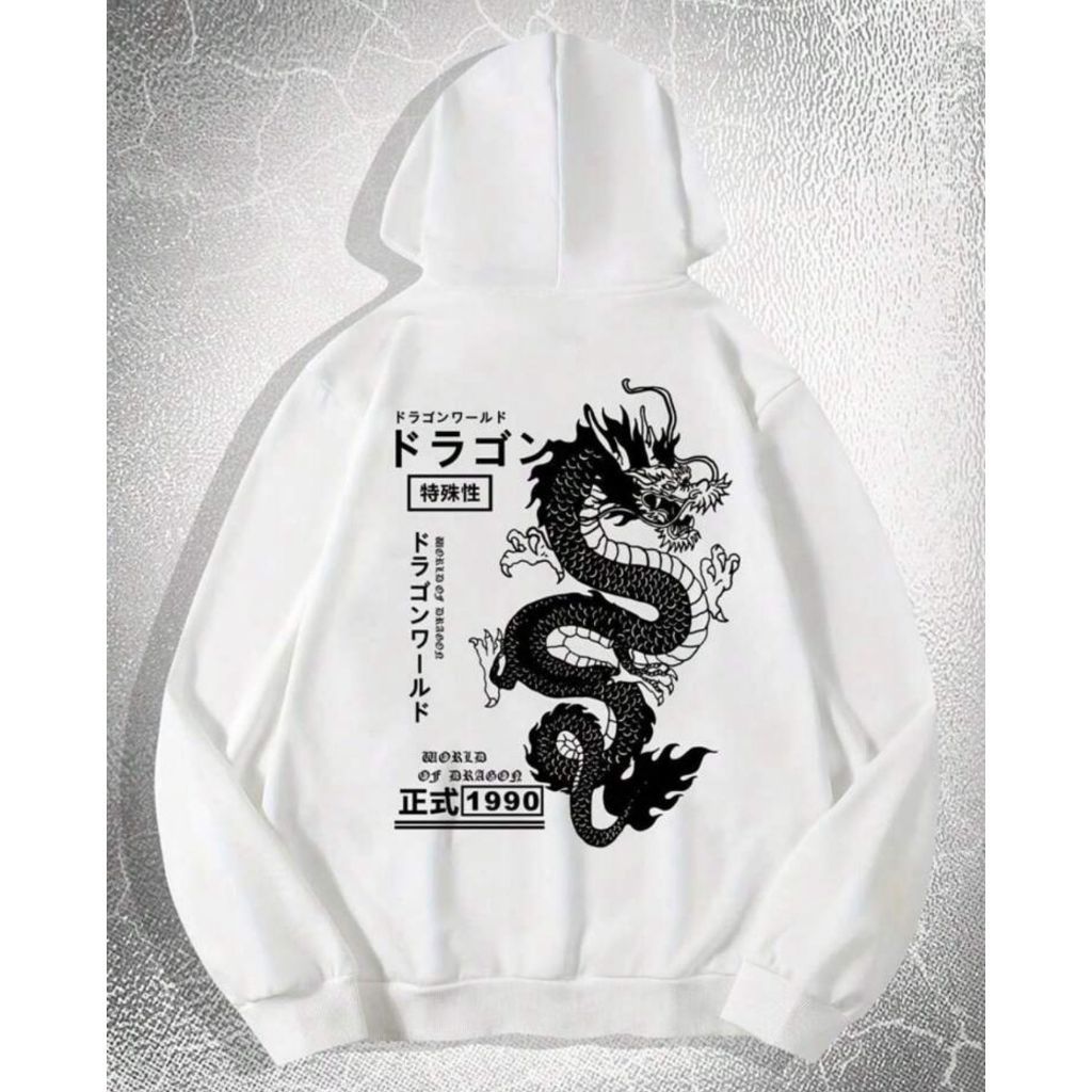 Moletom Blusa de Frio Unissex Premium Flanelado Canguru Capuz Dragão Chinês Streetwear