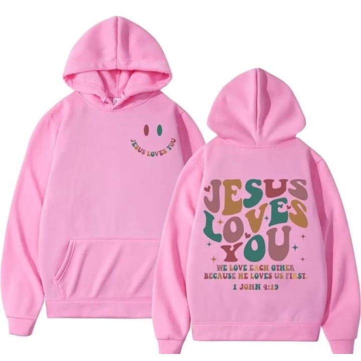 Moletom Blusa Frio Feminino Capuz Bolso Masculino Frase "Jesus Loves You"