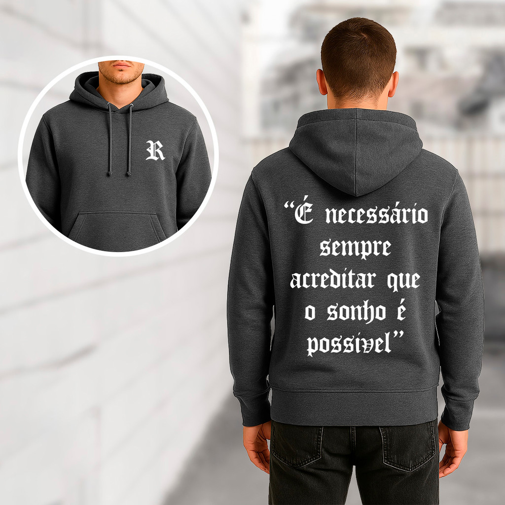 Moletom Blusão Oversized Frases Racionais MCs Frases Acreditar Que o Sonho é Possível Streetwear Top