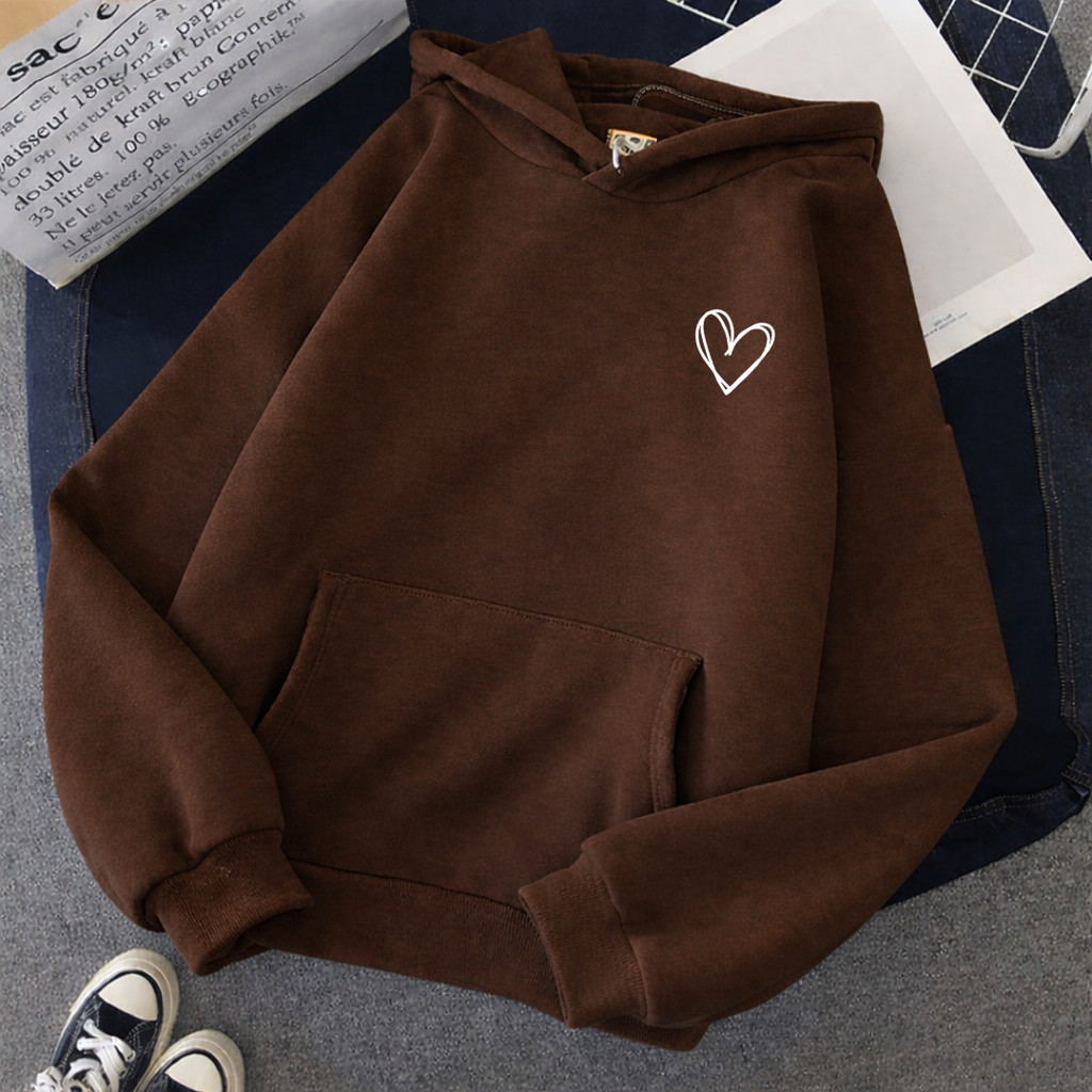 Moletom Canguru Blusa de Frio Unissex Capuz e Bolsos Estampado Com Coração