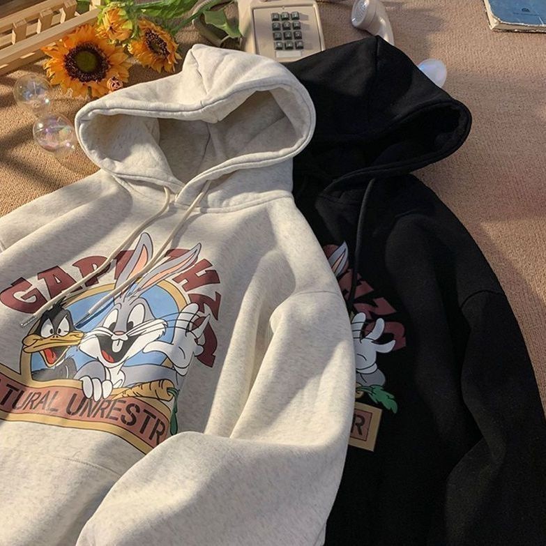 Moletom Canguru Blusão Confortável com Capuz Estampado PernaLonga e Patolino Flanelado Unissex