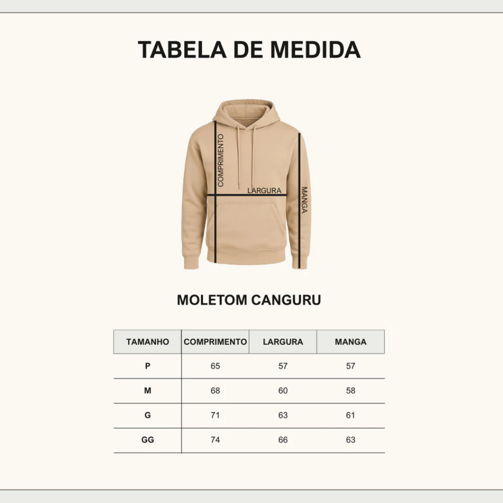 Moletom Canguru Premium PEDIDOS REALIZADOS ATÉ ÁS 11:00 SÃO ENVIADOS NO MESMO DIA.. Conforto e Estilo em Alta Gramatura Diferencial da concorrência: - 50% Algodão, 50% Poliéster (alta durabilidade e conforto) - Gramatura 300g – espesso, quente e resistente - Interior flanelado – toque suave e térmico - Modelagem moderna com ajuste confortável - Capuz com cordão e bolso frontal funcional - Moletom 2 Cabos - Estampa em DTF de alta qualidade Tecido: - Algodão e Poliester - Flanelado - Hipoalergênico Estilo: -Para todos estilos e ocasiões. TABELA DE MEDIDA: P : Comprimento 65cm x Largura 57cm x Manga 57cm M : Comprimento 68cm x Largura 60cm x Manga 58cm G : Comprimento 71cm x Largura 63cm x Manga 61cm GG: Comprimento 74cm x Largura 66cm x Manga 63cm Renove seu guarda-roupa com um moletom que vai além da moda. Ele te acompanha em todas as ocasiões e estações do ano, com muito estilo e proteção. PEDIDOS REALIZADOS ATÉ ÁS 11:00 SÃO ENVIADOS NO MESMO DIA. Qualquer dúvida estamos à disposição no chat!