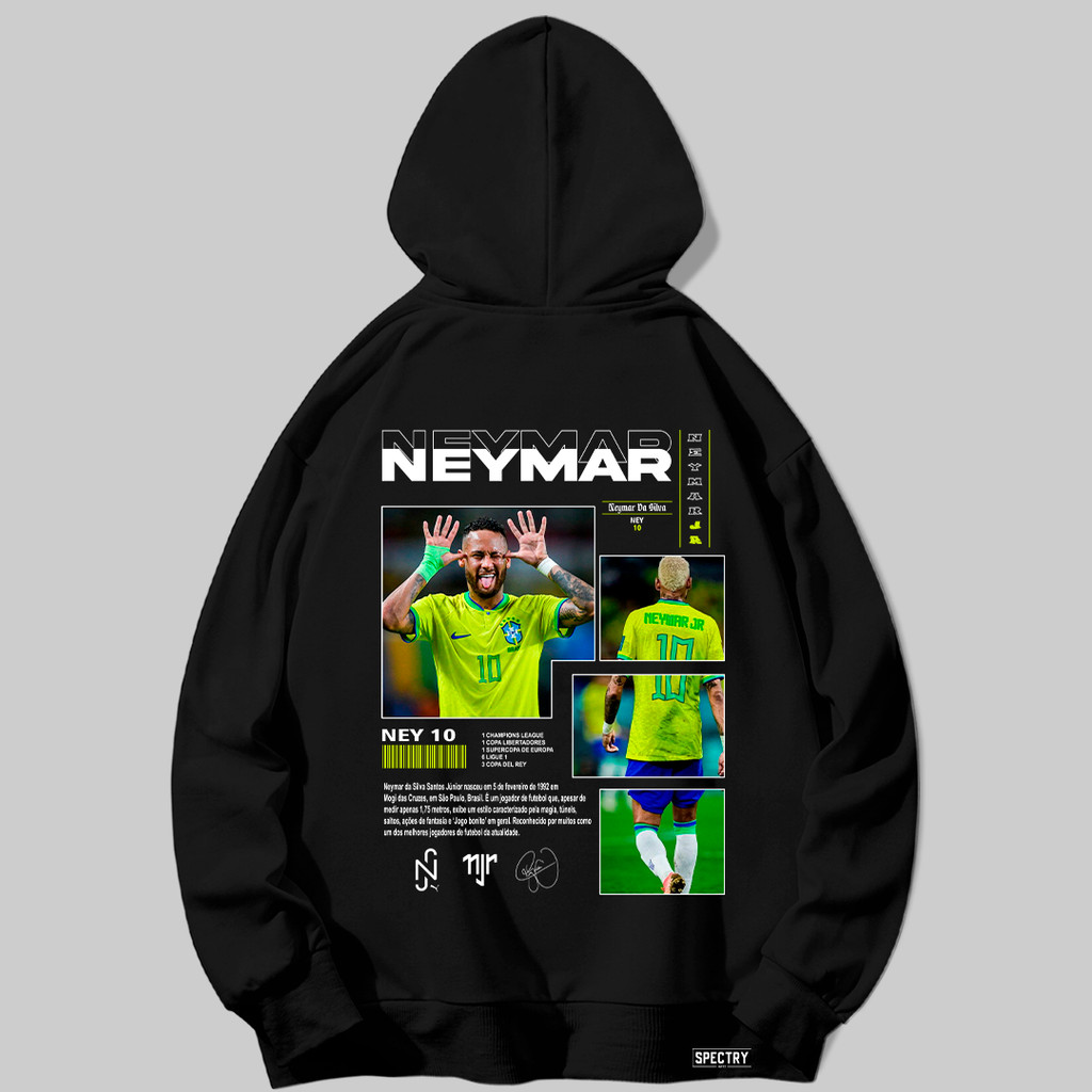 Moletom Canguru Com Bolso e Capuz Streetwear Neymar Jr Jogador Futebol Brasil Premium Unissex Star