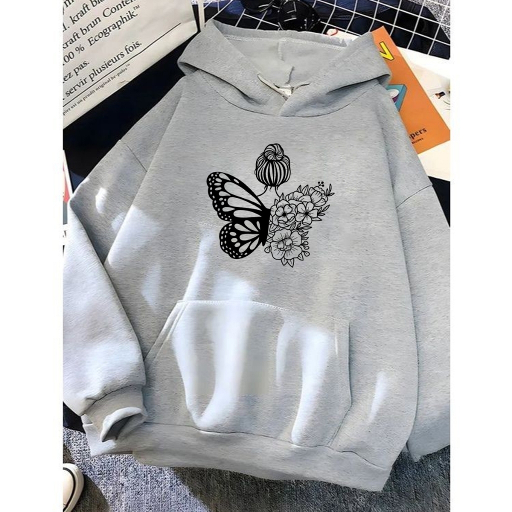 Moletom Canguru Unissex Girl Butterfly Flores Agasalho Casaco Blusa De Frio Blusão Capote Flanelado