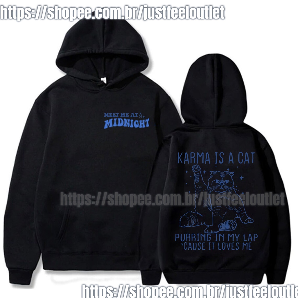 | Moletom Canguru Unissex Taylor Swift Karma Is A Cat este produto | R$ 69,90 | 30% | 4.8/5 | 7 |