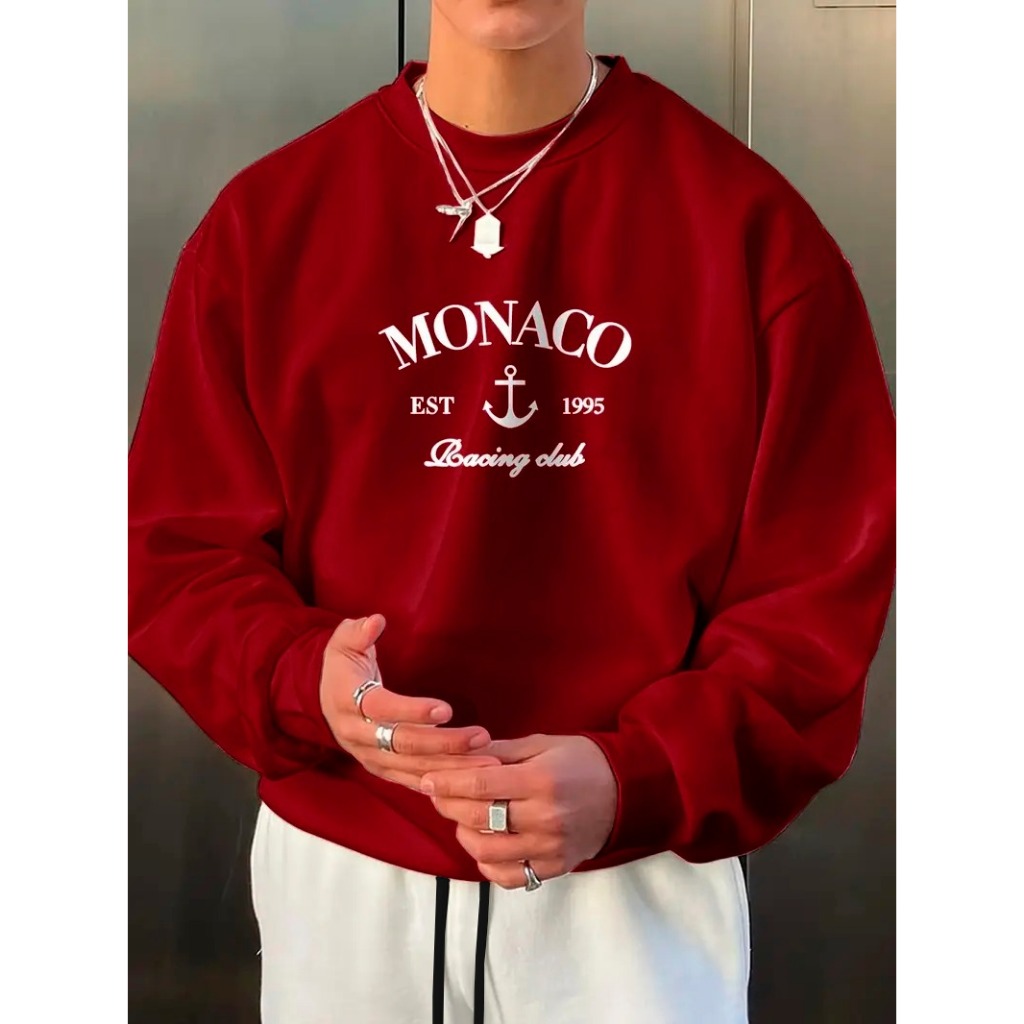 Moletom Careca Monaco Est 1995 Racing Club Gola Redonda Unissex Blusa De Frio Básico Casaco Flanelado Algodão