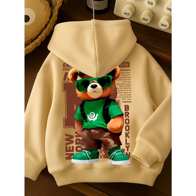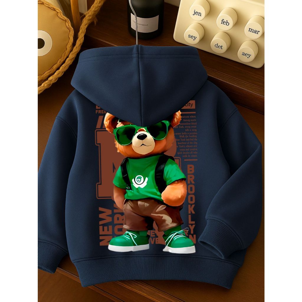 Moletom com Capuz de Manga Longa Confortável com Estampa de Urso Cartoon NY Minimalista para Meninos