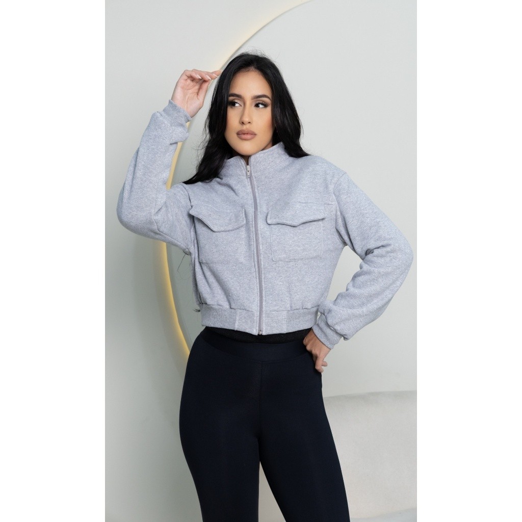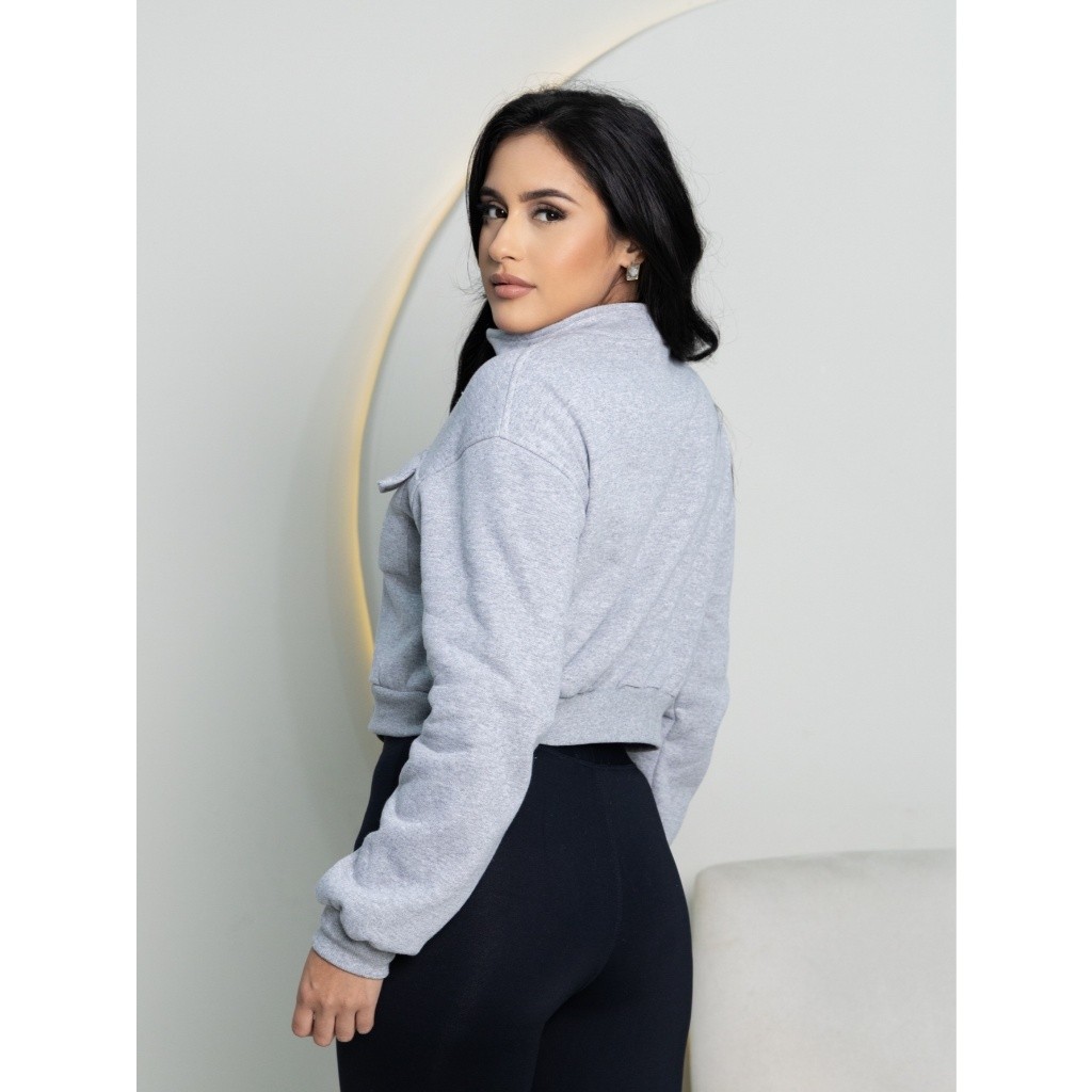 Moletom Cropped Casaco Feminino de Manga Longa com Zíper para Outono-Inverno Todas pronto entrega comprimento busto TAMANHO P/36-38 45cm 88-92 TAMANHO M/40 46cm 92-96 TAMANHO G/42 47cm 96-102 Tamanho GG 44 48cm 102-108