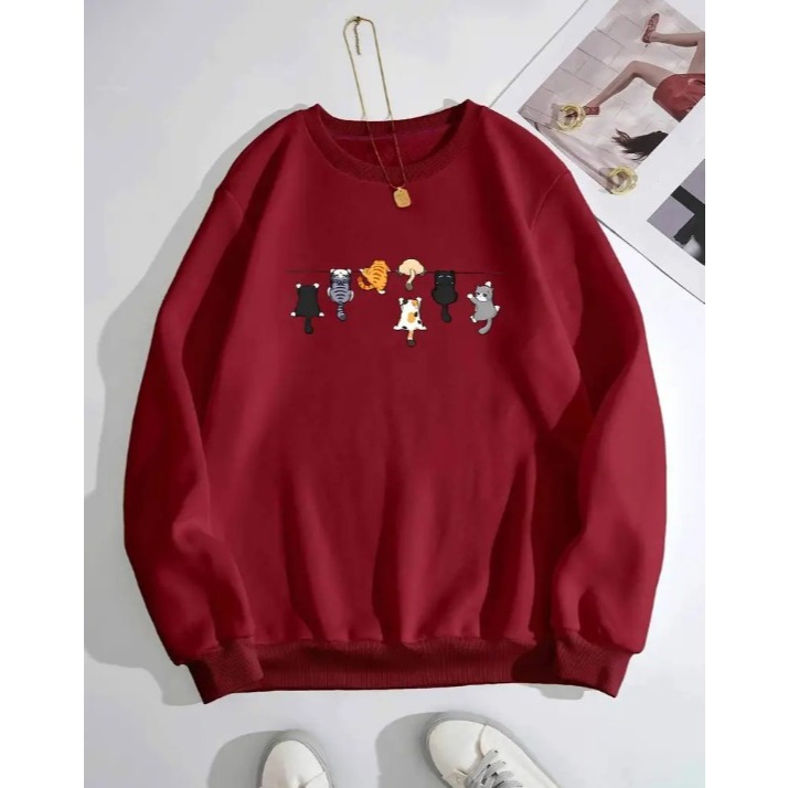 Moletom Gatinhos Pets Gola Redonda Blusa de Frio Careca Gato Pendurados Moda Inverno Fofo Delicado