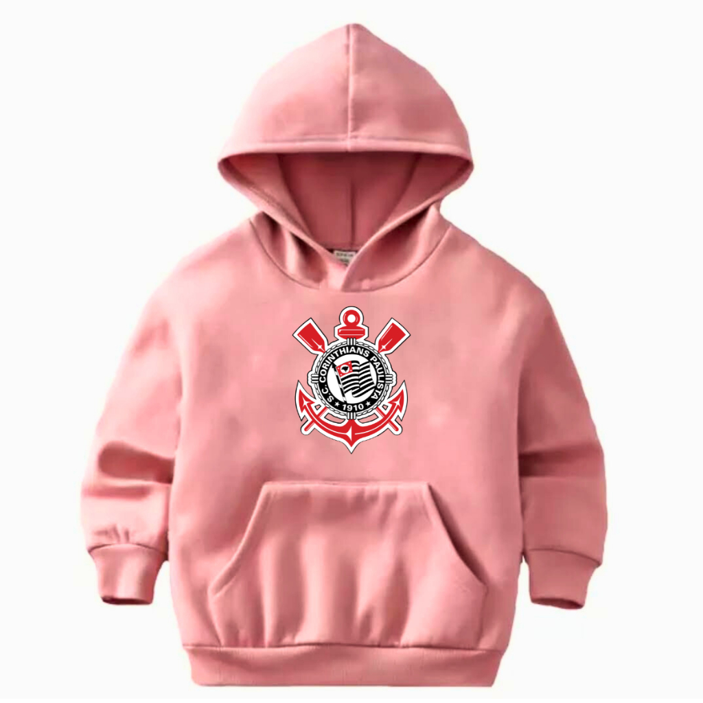 Moletom Infantil Flanelado Canguru Blusa Quentinha Casaco Corinthians Estampado Desenho Frase Time