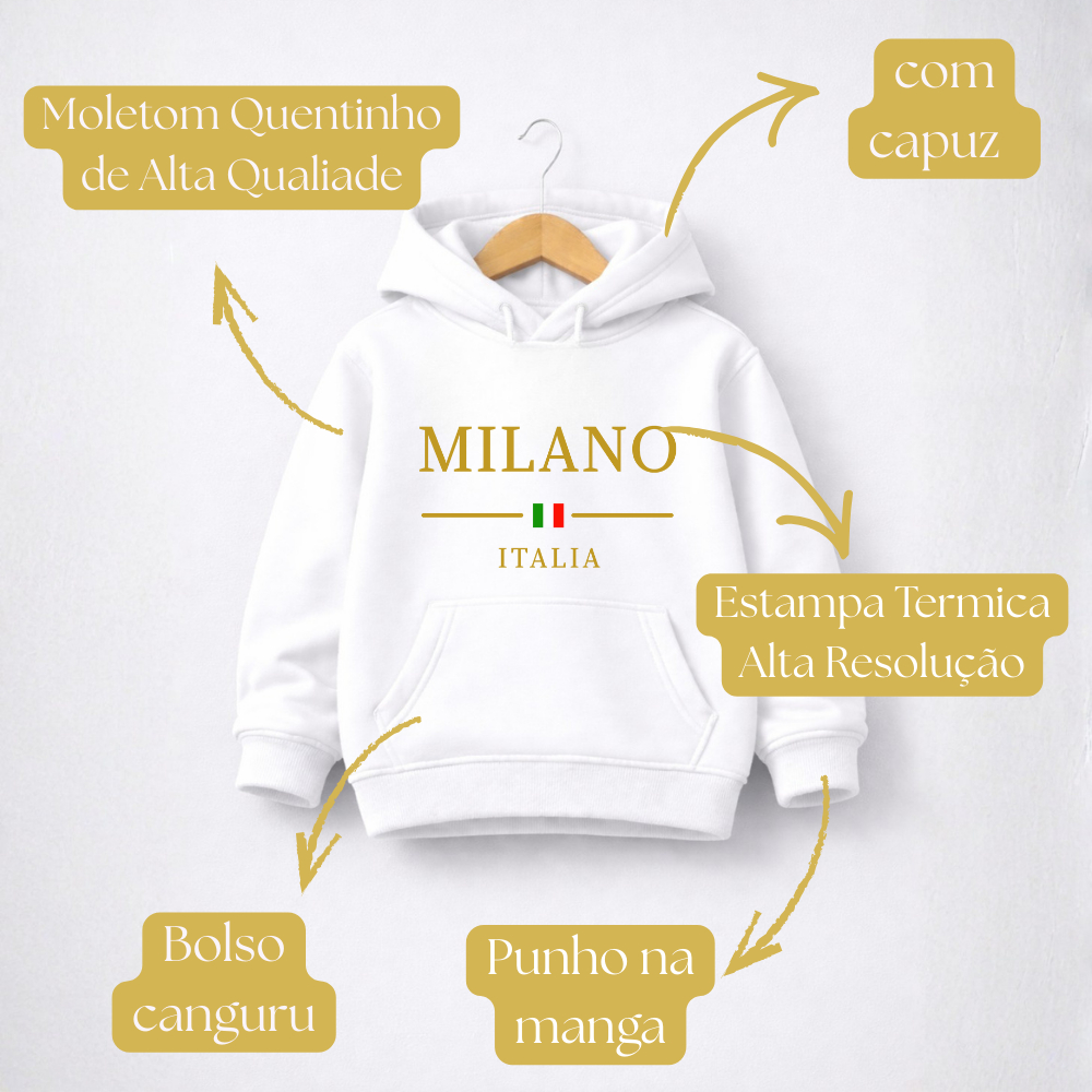 Moletom Infantil Milano Itália com Capuz Bolso Canguru Quentinha Confortável