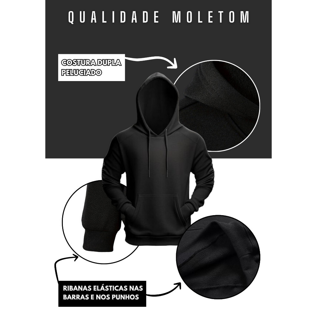 ''RECUSE IMITAÇÕES'' ''MAIS DE 8 ANOS NO RAMO DA CONFECÇÃO INOVANDO EM MELHORIAS PARA O CONSUMIDOR'' ''COMPRE DE QUEM PRESA PELA QUALIDADE E PREÇO JUSTO'' LINHA DE MOLETOM COM ALGODÃO PREMIUM E POLIÉSTER INFINITY TOUCH, TRAZENDO LEVEZA AO TOQUE E AO MESMO TEMPO AQUECENDO O CORPO E IMPEDINDO A SENSAÇÃO QUE AS TEMPERATURAS BAIXAM CAUSAM. (QUALIDADE ESSA QUE SE ENCONTRA SOMENTE COM QUEM TRABALHA COM ESTA TECNOLOGIA) DETALHES DO MOLETOM : => Modelo: Moletom Canguru unissex MASCULINO / FEMININO => Modelagem: Capuz ajustável com cadarço, punhos e barras com ribana e bolso canguru para armazenar pequenos objetos => Disponível nos Tamanhos: P, M, G e GG. => Tecido: 75% Algodão e 25% de Poliéster => Grossura / densidade: 300 de Gramatura => Estampa: Power Film (estampa recortada eletronicamente e aplicada no moletom através de termo transferência) => Detalhes da Estampa: Textura levemente emborrachada, semelhante ao silkscreen. Alta durabilidade e resistência a lavagens MEDIDAS : *P ao GG* (Peito x Altura x Manga x Comprimento x Peso) P) 89-93cm Peito 160-169cm Altura 59cm Manga 69cm Comp. 60-67 Kg Peso M) 94-99cm Peito 170-178cm Altura 61cm Manga 70cm Comp. 68-74 Kg Peso G) 100-104cm Peito 172-180cm Altura 64cm Manga 72cm Comp. 75-81 Kg Peso GG) 110-115cm Peito 175-192cm Altura 70cm Manga 76cm Comp. 82-95 Kg Peso QUAISQUER DUVIDAS ESTAREMOS A DISPOSIÇÃO EM NOSSO CHAT! (RESPOSTA IMEDIATA)