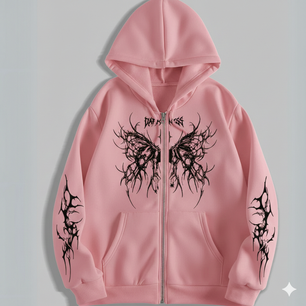 Moletom Ziper Tribal DARK Borboleta e Mangas Estilizadas Moda Alternativa