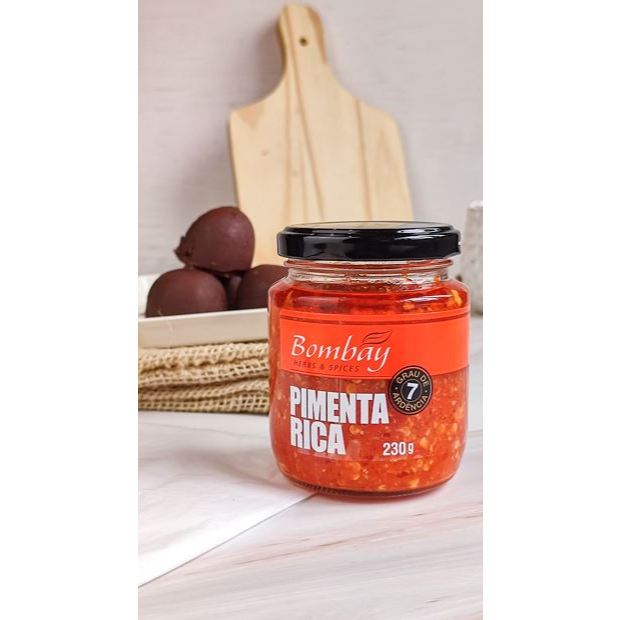 Molho de Pimenta Rica (Dedo-de-Moça) O Molho de Pimenta Rica da Bombay Herbs & Spices é feito com pimenta dedo-de-moça, uma variedade conhecida por seu sabor intenso e levemente picante. Ideal para quem gosta de dar um toque especial em suas refeições, este molho é perfeito para acompanhar petiscos, carnes, peixes, acompanhar a feijoada e até mesmo saladas. Com uma textura cremosa e um aroma irresistível, o Molho de Pimenta Rica vai conquistar o seu paladar e deixar suas refeições ainda mais saborosas. Produto exclusivo feito através de uma formulação própria e é um dos produtos mais amados e desejados pela família Bombay. Experimente e descubra o sabor único deste delicioso molho! Esse molho de Pimenta Dedo de Moça possui uma ardência 7 (em uma escala de 0 a 44), considerado uma ardência leve para amantes de pimenta. Se pudéssemos escolher uma indicação de molho de pimenta para você, a pimenta rica estaria no topo da fila! Grau de Ardência: 7 (escala de 0 a 44) Portanto se estiver procurando um molho saboroso como esse e com uma ardência mais acentuada conheça a Bhut Jolokia (escala de ardência 20) ou até mesmo a pimenta mais forte do mundo Carolina Reaper, com uma escala de ardência de 44! Ingredientes: pimenta dedo de moça vermelha, azeite, vinagre, cebola, alho e sal. Não contém glúten.