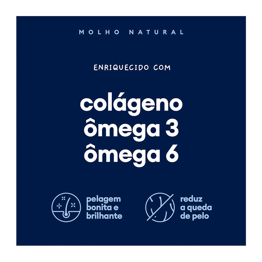 Molho Natural Para Cães Pet Delícia Sabor Frango 100g – Indicado para cães;– Deixa a ração mais saborosa;– Contém frango;– Enriquecido com colágeno, ômega 3 e ômega 6;– Ajuda a manter a pelagem bonita e brilhante;– Auxilia na redução de queda de pelos. O Molho Natural Frango para Cães Pet Delícia é perfeito para deixar a ração mais saborosa e com o aroma de comida de verdade. Uma combinação incrível de ingredientes naturais, como frango e enriquecido com colágeno, ômega 3 e ômega 6 ele ajuda a manter a pelagem bonita, brilhante e oferece benefícios para a saúde como a redução de queda de pelos. Ao utilizar o molho você adiciona o sabor natural de frango, deixando a hora de comer muito mais alegre para seu cão e ainda ajuda na ingestão de água. Modo de usar Quantidade diária recomendada.Para Cães até 10 kg: até 1 lata por diaPara Cães de 10 kg até 30 kg: até 2 latas por diaPara Cães acima de 30 kg: até 3 latas por dia IngredientesÁgua, moela de frango, peito de frango, chuchu, cenoura, ovos, abobrinha, brócolis, fécula de mandioca, chia, óleo de girassol, lecitina de soja não transgênica, colágeno (mín. 0,25%), goma xantana, algas em pó. Eventuais substitutos: Lecitina de girassol.