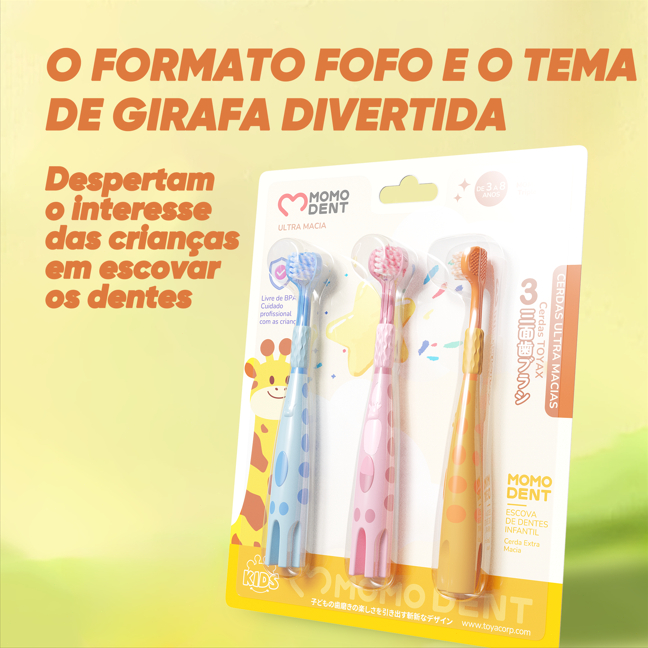 😊Bem-vindo à Shok Shop. Momodent Escova Dental Infantil 3 em 1 - Divertida, Segura e 3x Mais Eficiente! 🦒✨ Características do Produto: Escova de dentes infantil 3 em 1, com design de girafa, divertida e eficaz, limpa três vezes mais rápido. 1. Mais prática, inteligente e eficiente. Possui um design de cabeça de escova com três lados que limpa a frente, o verso e a parte superior dos dentes simultaneamente. Limpa os dentes do seu bebê completamente e protege sua saúde bucal. 2. Design ergonômico Design ergonômico com dimensões ideais para o controle infantil (cabo de 15.49 cm). Cabeça compacta e arredondada (aprox. 2.15 cm) que alcança todos os dentinhos com segurança e conforto. 3. Cada conjunto contém 3 escovas de dentes. Indicado para crianças de 3 a 8 anos. ---------------------------------- 🛒Seu pedido será enviado em até 1 dia. O prazo de entrega dependerá do seu endereço. Por favor, seja paciente.❤️ Caso haja algum problema com o produto, entre em contato conosco imediatamente.😊 Muito obrigado por visitar nossa loja. Se você gostou do produto, por favor, deixe uma avaliação de cinco estrelas. Obrigado e desejamos uma vida feliz!😘