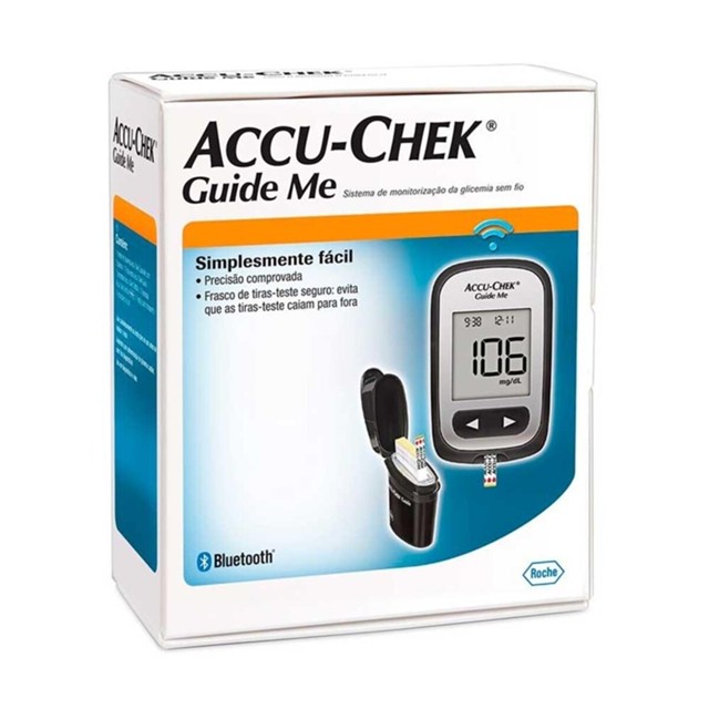 O Monitor de Glicemia Accu-Chek Guide Me é ideal para proporcionar mais simplicidade à medição de glicemia. Como vem com tiras de fácil dosagem, basta uma pequena gota de sangue para uma ampla área de aplicação, mostrando o resultado do teste em menos de 4 segundos. Muito cômodo, possui conectividade Bluetooth e via cabo USB, que permite a passagem dos dados de forma automática para seu smartphone. O Kit contém: 1 Monitor de Glicemia Accu-Chek Guide Me 1 Caneta lancetadora Guide Me 10 Tiras Accu-Chek Guide Me 6 Lancetas Accu-Chek Guide Me
