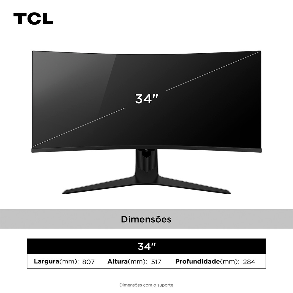 O Monitor TCL 34R83Q combina qualidade de imagem com alto desempenho: tela QD Mini LED de 34", resolução WQHD e HDR1400. Com taxa de atualização de 180 Hz e 1ms de resposta, é ideal para jogos rápidos e imagens fluidas. Possui conexões HDMI, DisplayPort e design moderno na cor preta. Modelo: 34R83Q PN: 34R83Q Cor: Preto Marca: TCL Configurações de Tela: Tipo De Tela: Curva Tipo De Painel: QD MINI LED Controle De Contraste Aprimorado: Sim Formato De Tela: Ultra Wide 21:9 Tamanho De Tela: 34" Resolução Em Pixel: 3440 X 1440 (WQHD) HDR: Sim (HDR1400) Brilho (Teste De Longa Duração): 900 cd/m2 Brilho (Teste Instantâneo): 1400 NITS Contraste Estático: 4000:1 Tempo De Resposta Do Painel (Ms): 1 Ângulo De Visão (Horizontal/Vertical): 178° / 178° Taxa De Atualização: 180 Hz Gama De Cores: 95% DCI-P3 Ajuste De Cor: Frio, Padrão, Quente e Personalizado Configurações de Áudio: Alto-Falante: Duplo Embutido Potência: 3W * 2 Conexões: 02 x HDMI; 02 x USB-A; 01 x USB-B; 01 x Display Port; 01 x Entrada de Fone de Ouvido (P3); 01 x Entrada Tipo C; 01 x Entrada de Energia; Configurações de Energia: Tensão De Alimentação: 100-240V ~ 50/60Hz Consumo (W): 260 Consumo Stand By (W): < 0,5 Dimensões sem base (A x L x P): 36 x 80,7 x 14,15 cm Dimensões com base (A x L x P): 51,7 x 80,7 x 28,4 cm Peso Líquido: 8,8 Kg Conteúdo da Embalagem: 01 x Monitor; 01 x Cabo de Energia (1,5 metros); 01 x Cabo Tipo C (1 metro); 01 x Cabo USB-B para USB-A (1,5 metros) 01 x Cabo Display Port (1,5 metros); 01 x Cabo HDMI (1,5 metros); 01 x Manual de Instruções; Garantia: 12 meses com a fabricante