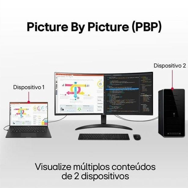 Monitor LG UltraWide Curvo Tela VA de 34” WQHD 3440 x 1440 21:9 sRGB 99% HDR10 PBP 100Hz AMD FreeSync 34WR50QC-B