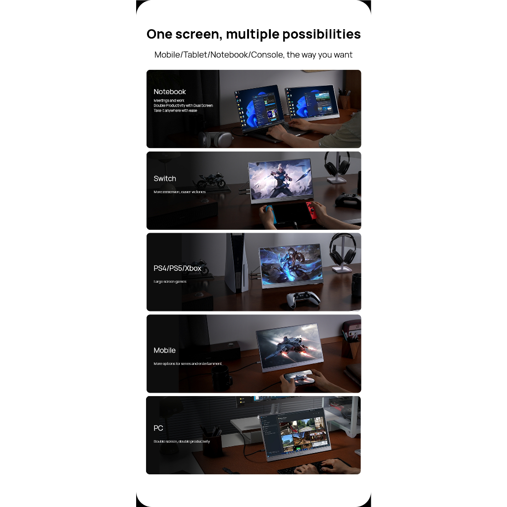Tecnologia para Cada Momento Somos especializados em monitores portáteis e molduras para fotos digitais, trazendo inovação e comodidade ao seu dia a dia. Desfrute de uma experiência perfeita em qualquer lugar - em casa, no trabalho ou em movimento - desfrute de uma experiência perfeita em qualquer lugar - em casa, no trabalho ou em movimento - com ARZOPA ao seu lado. ---------------------------------------------------------------------------------------------------------------------------------------------------------------------------------------------------------------------------------------------------------------------------------- Características da chave da chave: 🌈 Visuais QHD impressionantes de 2,5K deslumbrantes 2,5K QHD Desfrute de imagens nítidas e realistas com uma resolução de 2560×1440, brilho de 400 nits e proporção de contraste 1000:1. O painel QHD oferece cores vivas, profundamente PretoDetalhes claros para jogos, trabalho e entretenimento ss e cristalinos - perfeitos para jogos, trabalho e entretenimento. ⚡ Taxa de refresca de 180 hz Visuais ultra-suave de experiência com uma alta taxa de atualização de 180Hz. Reprodução de vídeo embaçante e entrada de movimento para jogos mais rápidos, mais responsivos e reprodução de vídeo sem costura Reduzir o desfoque de movimento e lag de entrada para jogos mais rápidos, mais responsivos e reprodução de vídeo sem costura. 🔌 Conveniência de plugue e reprodução verdadeira Equipado com duas portas USB-C de função completa e uma porta Mini HDMI, esta tela portátil funciona instantaneamente com seu laptop, MacBook, PS5, Xbox, Steam Deck e muito mais - não é necessário drivers ou configuração. 🖥️ Tela dupla perfeita para produtividade Expandir o espaço de trabalho facilmente. Use o Z3FC como um segundo monitor para multitarefa, editar ou presentear com facilidade. Modos de paisagem e retrato para combinar com seu estilo de trabalho. 🎮 Suporte de chute embutido, elegante e portátil Projetado com um suporte ajustável embutido, você pode inclinar livremente a tela para o ângulo de visão mais confortável Projetado com um suporte ajustável embutido, você pode inclinar livremente a tela para o ângulo de visualização mais confortável. Ideal para profissionais e jogadores em movimento. ---------------------------------------------------------------------------------------------------------------------------------------------------------------------------------------------------------------------------------------------------------------------------------- 🔧 Especificações do produto Marca: ARZOPA Modelo: Z3FC Tamanho da tela: 16,1 polegadas · Resolução: 2560×1440 (QHD) Taxa de atualização: 180Hz Gamut de cor: 107% sRGB Relação de aspecto: 16:9 Superfície · Superfície: Fosco, Antirreflexo · Portas: 2× USB-C (Função Completa), 1× Mini HDMI ---------------------------------------------------------------------------------------------------------------------------------------------------------------------------------------------------------------------------------------------------------------------------------- 📦 O que está na caixa Monitor portátil ARZOPA Z3FC 1× ARZOPA Z3FC 2× USB-C para cabo USB-C Mini HDMI para cabo HDMI Manual do usuário